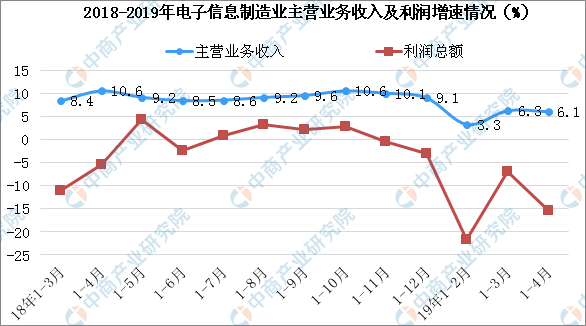 從行業營收來看:最新數據顯示,14月全國(guó)規模以上電子信息制造業營業收入同比增長(cháng)6.1%,利潤同比下降15.3%,營業收入利潤率爲2.93%,營業成(chéng)本同比增長(cháng)6.1%,應收票據及應收賬款同比增長(cháng)5.4%。總體來看,行業營收及利潤低于2018年整體水平,體現了電子信息制造業效益整體下滑。