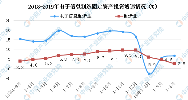 從固定資産投資來看:201914月,我國(guó)電子信息制造業固定資産投資同比增長(cháng)6.7%,比13月加快1.2個百分點,高于同期制造業投資增速4.2個百分點。
